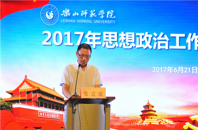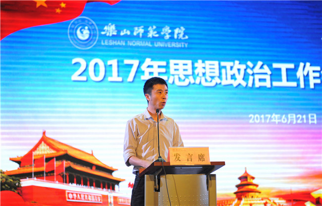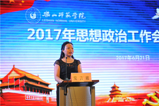 为深入贯彻习近平总书记重要讲话精神、全国及四川省高校思政会议精神及《关于加强和改进新形势下高校思想政治工作的意见》精神,进一步加强和改进新形势下我校思想政治工作,6月21日下午,学校在实验实训大楼多功能厅召开2017年思想政治工作会。学校党委副书记、校长胡丹主持会议。