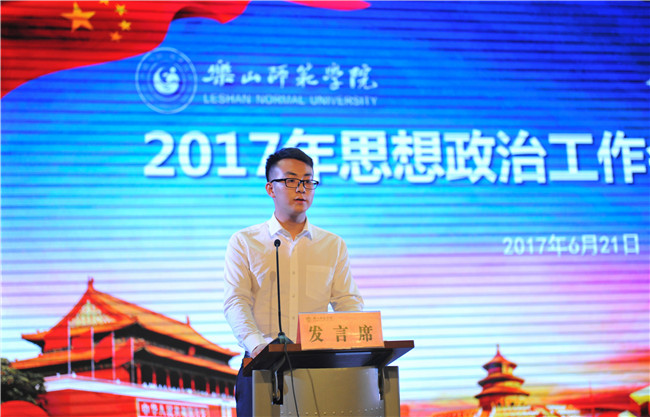 围绕《强化“生命线”意识,坚持“四个服务”,全面加强“大思政”工作格局建设,不断提升学校思想政治工作水平》的主题,与会人员集体观看了学校思政工作专题片,回顾了近年来我校思政工作的系列举措和显著成效。大会中,教师和学生代表进行了交流发言。特教学院党总支书记林天兴、马克思主义学院专任教师赖伟博士、物电学院专任教师、班主任杨济豪,计科学院学生科长、政治辅导员谭红梅,2016年四川省优秀青年马克思主义者培训班学员、旅游学院学生党员郭佳鑫结合自身经历,各自分享了在工作学习过程中教书育人、服务育人、立德树人的先进典型事迹。他们在最平凡的岗位上默默耕耘,春风化雨般滋润着一批又一批优秀的学子成长成才,为学校“大思政”工作格局建设作出了不菲的成绩。