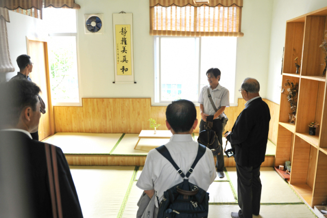 访问团一行与日语专业师生一起种植了两棵象征中日友好的樱花树,参观了我校日语专业日本文化体验茶道室,与日语专业学生进行了近距离的交流。国际处副处长于科先同志发表热情洋溢的讲话,他首先代表学校对日本客人的到访表示热烈的欢迎,并希望通过代表团与学生的交流,增进相互了解,促进中日友好,同时也希望通过广岛县日中亲善协会能够进一步促进我校的对日交流活动;日方代表团团长加藤义明表示,作为民间友好交流团体,职责之一就是为了更好地帮助日中两国的人民增进相互的了解和认识,将延续千年的日中友好继续发展下去,并热忱欢迎乐山师范学院的师生能够去日本广岛学习、就职。随后,代表团一行分别与50余名师生进行了分组交流。交流会在同学们折千纸鹤的欢乐氛围中顺利结束。日方代表团对我校日语专业教师的职业能力和学生的日语专业素养给予了高度评价。