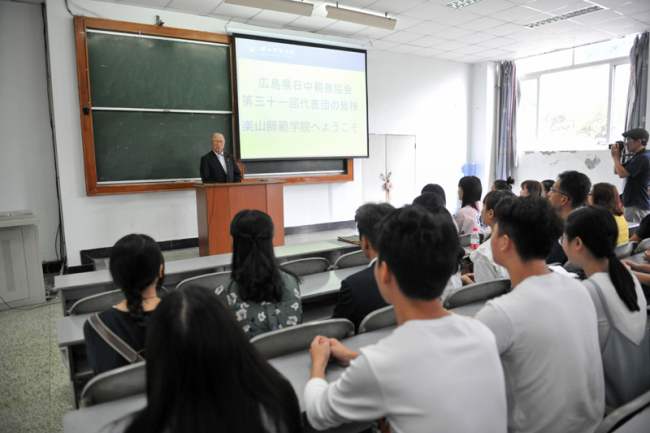 2017年9月25日上午,广岛县日中亲善协会第31次友好代表团一行13人在四川省人民对外友好协会薛玲女士陪同下来我校访问交流,国际合作与交流主要负责人及对日交流项目负责同志、我校日籍教师、日语系部分教师以及我校日语专业学生50余人热情接待了访问团一行。