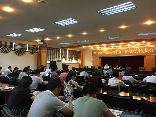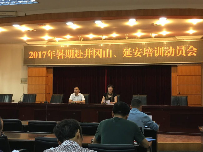 为进一步加强干部教育培训,推动“两学一做”学习教育常态化制度化,6月26日下午,学校在弘毅楼第三会议室召开2017年暑假赴井冈山、延安培训动员会,即将赴井冈山、延安培训的全体学员参加了动员会。会议由党委书记杨胜宽主持。
