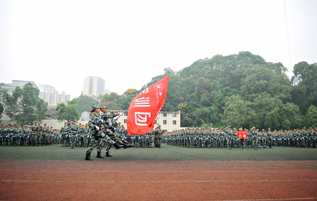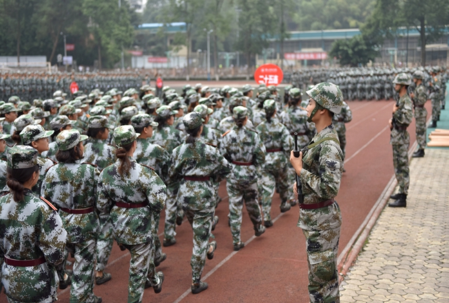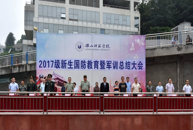 9月18日上午,我校在田径场举行2017级新生国防教育暨军训总结大会。学校副校长任学锋教授,乐山市军分区战备建设处处长崔英杰上校,西部战区、乐山预备役步兵旅炮兵团参谋长刘汉伟中校,学校军训领导小组成员单位负责人,各教学院党总支副书记,2017级新生军训教官、军训团工作人员及全体新生参加了大会。会议由学工部副部长、军训团副政委丁敏娜主持。