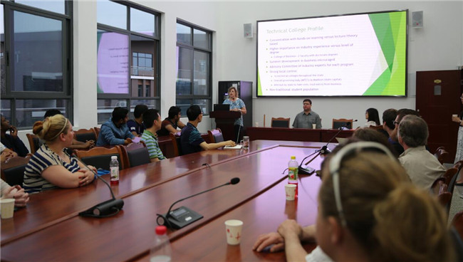 当日晚上,Julie Ebben-Matzke和NWTC教师Robert Buchholz共同为计科学院师生做了一场学术报告,他们介绍了NWTC的办学模式、教学方法、招收国际学生流程等情况。报告结束后,计科学院师生和我院的孟加拉国留学生踊跃提问,与NWTC师生开展了全面的交流互动。我校国际处的领导和工作人员为本次学术交流提供了大力帮助。