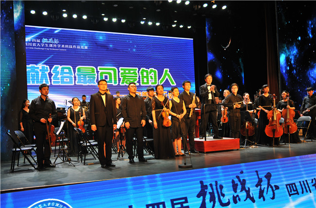 为感谢为第十四届“挑战杯”四川省大学生课外学术科技作品竞赛决赛辛勤付出的各主办、承办单位的每一位领导、老师、参赛学生,志愿者,我校组织音乐学院青年交响乐团于6月11日晚7:30至8:30在学校实训楼多功能厅举办了专场交响音乐会——献给最可爱的人。