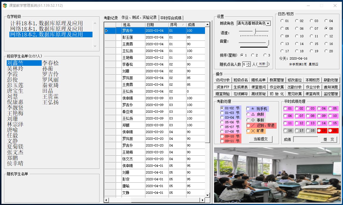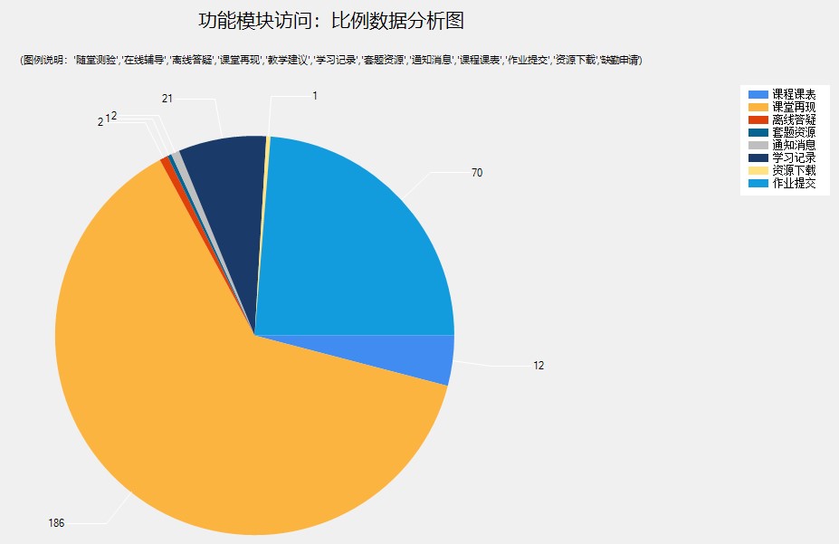 刘毅老师教学团队开发的“ClassAgain课堂教学系统”功能强大,能满足网络教学需求,它可以实现计算机语音点名、随机生成提交作业名单、随机提问学生、教案管理、座位管理、本期校历、缺勤申请处理、资源FTP客户、课程课表、作业收集、消息通知、随堂测验、在线辅导、离线答疑、意见收集、监控管理、课堂再现、学生访问分析、作业分析、出勤率分析等。“该系统不仅可以同步学校课堂教学计划组织提供资源,‘再现’课堂现场,也能够对学生上线数据、资源访问数据、功能使用数据、提交作业数据、缺勤数据等进行大数据分析,实时生成数据分析表、分析图,还为学生提供了章节学习完成后的自测。”