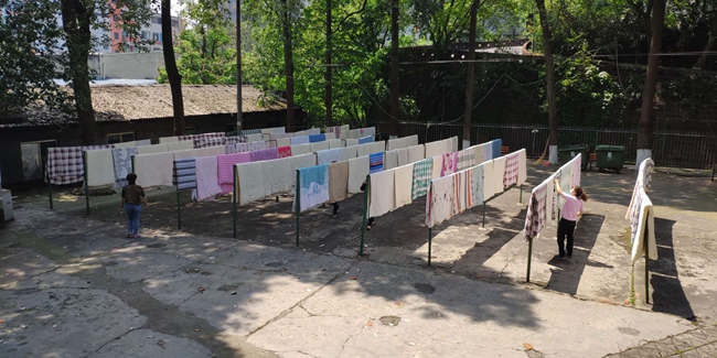 乐山属于亚热带季风气候,天气温润潮湿,疫情期间学生不能返校,虽然学生公寓每周给寝室通风透气两次,但棉被仍有返潮的现象。为了让学生返校后有个温暖舒心的住宿环境,学生公寓中心早在4月初就开始酝酿晒棉被的服务事宜。4月12日,12幢宿管阿姨刘茂仙在楼幢微信群里看到有学生提出这样的想法,更加坚定了公寓中心开展此项服务的决心。周彦杉说:“学生公寓中心长期以来一直以‘为学生服好务’为宗旨,为了学生的身心健康,我们不断提高服务保障水平、提升内涵文化建设,通过服务育人、环境育人,努力为学校人才培养贡献力量。”