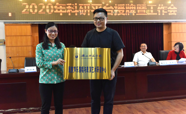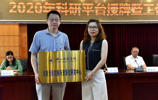 会议首先由刘芳宣读《2020年度乐山师范学院校级科研平台设置名单》,随后,王辉、杜学元、陈天柱、廖久明、郭剑英为省委宣传部、省社科联认定的第八批“四川省社会科学普及基地”应急管理知识普及基地和我校新设置的50个校级科研平台分别授牌。