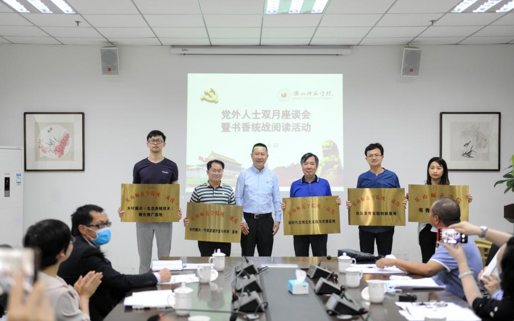 陈立志为新时代文明文化实践与传播基地、乡村振兴(生态养殖技术)孵化推广基地、乡村振兴“竹类资源开发与利用”基地、社区美育实践创新基地四个“书香统战”基地授牌。
