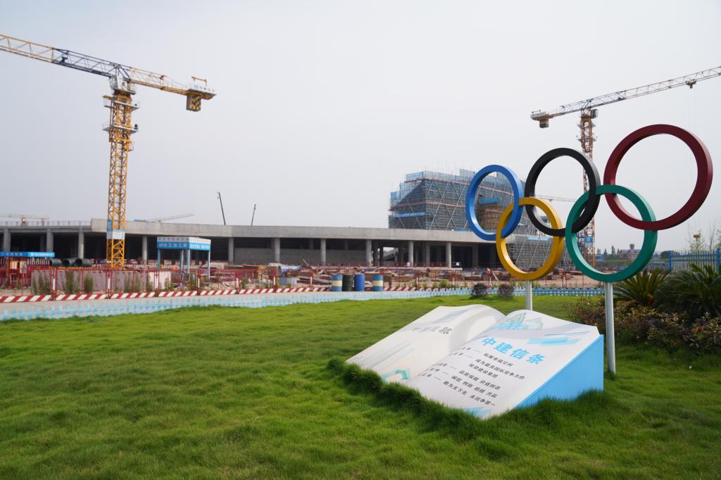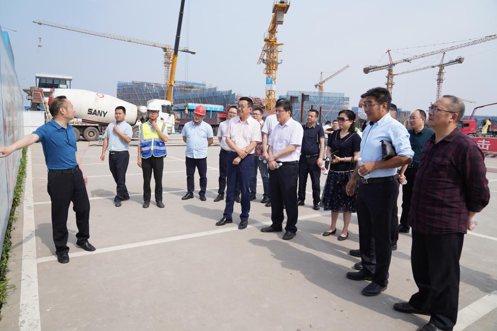 在王明曦的引导下,党委书记胡丹、校长王辉一行登上了工地观景台。极目远望,奥体中心建设有条不紊,紧邻奥体中心的我校新校区建设用地尽收眼底。