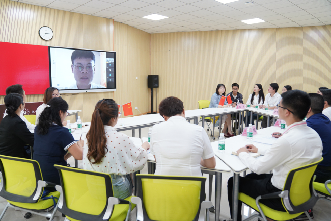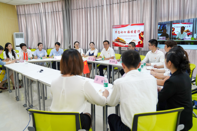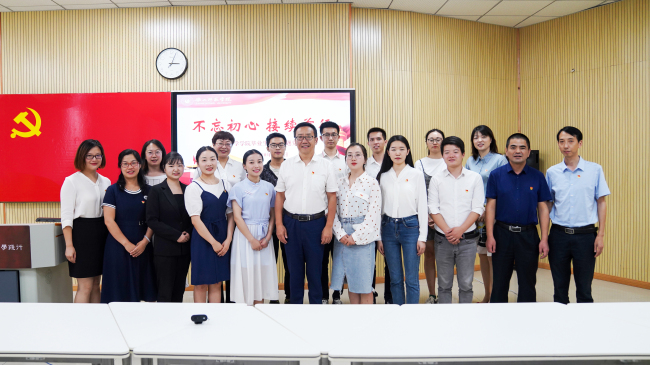 本网讯(文/曹力欢、图/梁晨)为进一步提升毕业生党员党性修养,引导毕业生党员增强党员意识,牢记党员身份,6月4日下午,生科学院在音乐学院智慧教室采取现场出席与网络出席相结合的方式,开展了以“不忘初心 接续前行”为主题的2020届毕业生党员主题党日活动。生科学院学生党支部联系领导、学校党委书记胡丹出席并指导了本次主题党日活动,党委学生工作部部长黄显刚、党委组织部副部长刘馨、生科学院院长唐梅、党总支副书记杨益及2020届全体毕业生党员参加了本次主题党日活动。活动由生科学院党总支书记罗立顺主持。