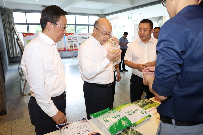 在学校校史陈列馆外,胡丹和王辉汇报了学校党建、新校区建设、学科建设、科技服务地方和学校重点实验室建设等方面情况。王正谱饶有兴趣地观看了四川省重点实验室——竹类病虫害防控与资源开发实验室科研人员操作的竹纤维吸水演示实验:竹纤维高分子材料能快速吸水350倍。当了解到,这项科研成果,不仅能让毛竹子的价值提高50倍时,同时能够应用到种草防沙,改变生态环境时,王正谱说,乐山市委、市政府、乐山师范学院要认真贯彻落实习总书记来川指出的“四川要因地制宜发展竹产业的重要指示”精神,从政策、资金等多方面加大支持竹产业发展力度,做大做强竹纤维产业,助推全省林竹产业高质量可持续发展。同时希望竹类省重点实验室不断提高科研水平,积极让科技成果尽快转化为生产力,多研究出能为社会生产服务的优秀成果。