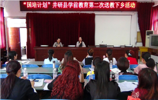 4月20日,“国培计划(2015)”——中西部项目四川省乡村中小学(幼儿园)培训团队置换脱产研修项目送教下乡第二阶段活动在井研县机关幼儿园(分园)进行。我校教科学院学前教育专业刘涛老师到场指导此次送教下乡活动。参与本次活动的有井研县进修校陈国祥主任、井研县幼教教研员左雪英老师、县级培训团队成员和来自28所幼儿园的50余名教师。