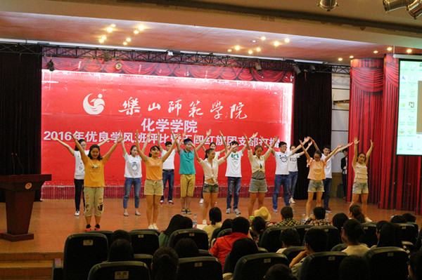 本次打擂评分主要由平时成绩、班级介绍、现场展示三部分构成,活动在15化1动感《小苹果》中拉开序幕,各团支部结合PPT,围绕支部情况、学风建设、文娱活动、推优入党等环节进行陈述,展示了班级团支部风采。在班级展示环节,各支部结合专业,有讲雾霾唱五环之歌的相声,有讲化学常识的骗子情景剧,有疫苗事件的小品,更有动感精彩舞蹈歌曲,节目现场的气氛一次次推向高潮。活动中,敖良义老师还即兴作诗一首赠送给在场所有同学,将活动推向最高潮。经过紧张得角逐,15化1团支部获五四红旗团支部,13环科、13应化、14化1获优良学风班。最后,由杨泽勇对本次活动进行总结,并提出对各团支部的期许,期望各班团支部的带领下越来越好,希望同学们在支部的带领下,加强实践动手能力的提升,为就业打下坚实基础。