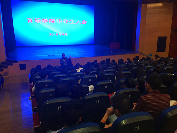 为进一步了解毕业班学生思想动态,掌握就业情况,布置近期相关工作,4月10日晚,音乐学院在实训大楼多功能厅召开了毕业生大会,党总支副书记赵迎春、辅导员杨锐以及本专科毕业班学生200余人参加。大会由辅导员罗智勇主持。
