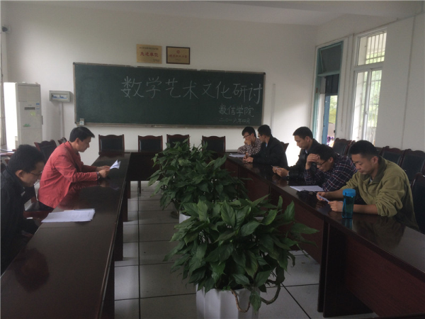 研讨会上,汪天飞根据学校艺术教育改革方案精神,结合数信学院学生艺术基础薄弱、艺术教育氛围不浓厚的情况,提出应加强数学艺术文化教育,围绕学校艺术教育“三个面向”的总体目标,坚持普及与提高并重,着力提高学生审美和人文素养,服务学生全面成长成才。各指导老师就数学艺术文化活动内容、形式等提出建议和看法,最终确定了举行数学文化与趣味知识竞赛、数学艺术专题讲座、数学艺术作品设计大赛、数学文化艺术晚会四个类别的艺术教育方案。