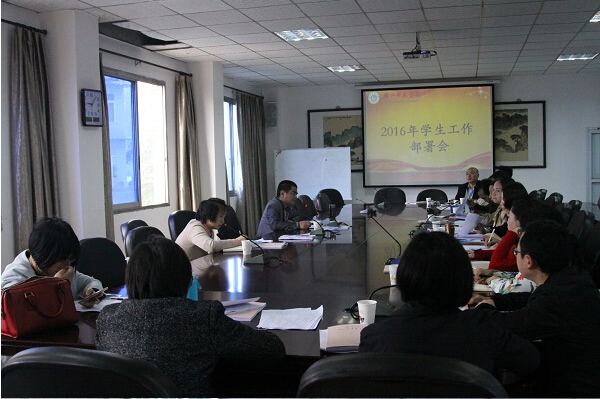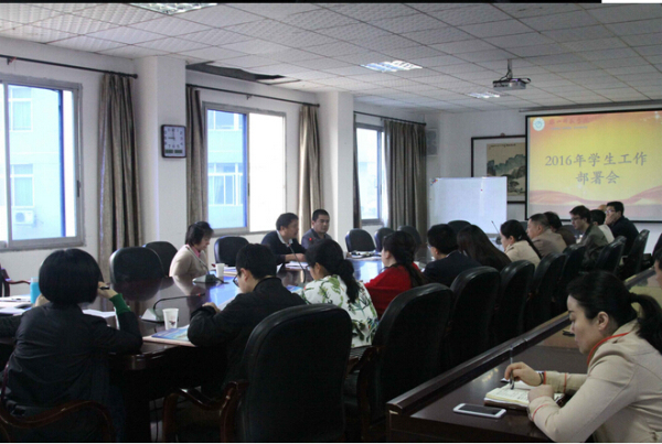 4月8日上午,学工部在自强楼五楼会议室组织召开了2016年学生工作部署会,学生处、校团委负责人及各教学院党总支副书记参加了此次会议,会议由学工部副部长罗立顺主持。
