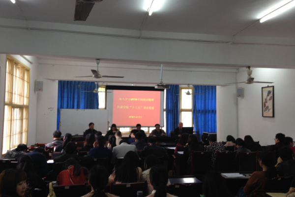 4月7日下午,外语学院全体教职工在学院底楼会议室开展了以深入学习全国两会精神,共谋外院“十三五”事业发展为主题的大会。此次会议由郭学文主持主讲。