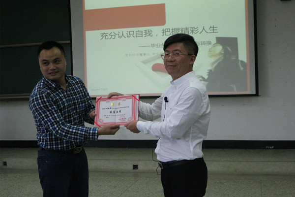 为转变学生就业观念,提高学生就业能力,4月28日下午,化学学院在行知楼201举办了以“充分认识自我 把握精彩人生”为主题的讲座。讲座由四川君和环保股份有限公司董事长李乐军主讲。君和环保股份有限公司副总经理张勇、化学学院副院长江滔、2015级环境工程班、2014级环境科学班和2013级全体同学聆听了此次讲座。