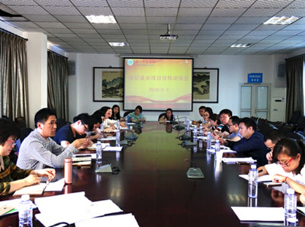 5月3日下午,由招就处组织的2016届毕业生基层就业项目宣讲动员大会在自强楼五楼会议室举行,招就处副处长宋天华、就业指导科教师及毕业班辅导员参加了此次会议。