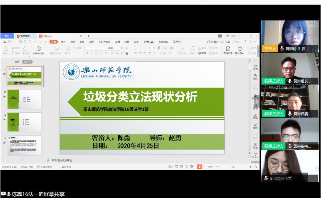 为确保论文网络答辩顺利进行,政法学院认真准备、精心筹划,建立各答辩小组联络QQ群,在正式答辩前进行答辩预演,测试网络状态、熟悉软件使用。在答辩过程中,学生从选题目的、意义、研究内容、方法、结论等方面进行5分钟的个人陈述,答辩老师结合学生论文和个人陈述进行提问,并针对论文中存在的问题提出修改意见。答辩结束后,答辩老师对小组学生的答辩成绩进行线上合议,并给定最终答辩成绩。