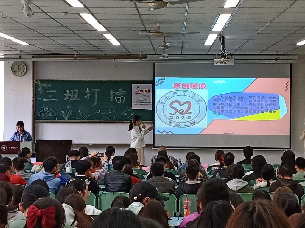 本网讯(文/谭玲蕊图/吴霜)11月7日下午,特教学院在行知楼101教室举办“展班级风貌,扬特教风采”三班打擂活动。本次活动由学院教师梁剑、李燕、李晓畅、唐丹担任评委,并邀请辅导员周丽岚,学院分会主席周雯慧、吴彤、赖佳慧,设计学院分会副主席王世璇做嘉宾。