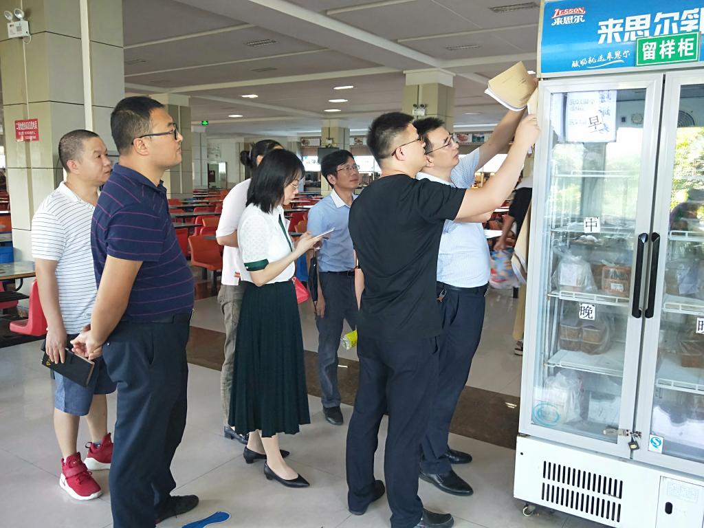 李方裕一行重点检查了武珈山美食广场、嘉汇苑、百果苑、陶然居食堂,以及学生公寓、学生浴室、洗衣房等地,详细查看了美食广场及食堂原料采购、食物存放条件、食品留样、食物操作间卫生等情况,逐一排查了人员、消防、食品安全隐患,确保校园安全工作做到“滴水不漏,万无一失,绝对安全”。